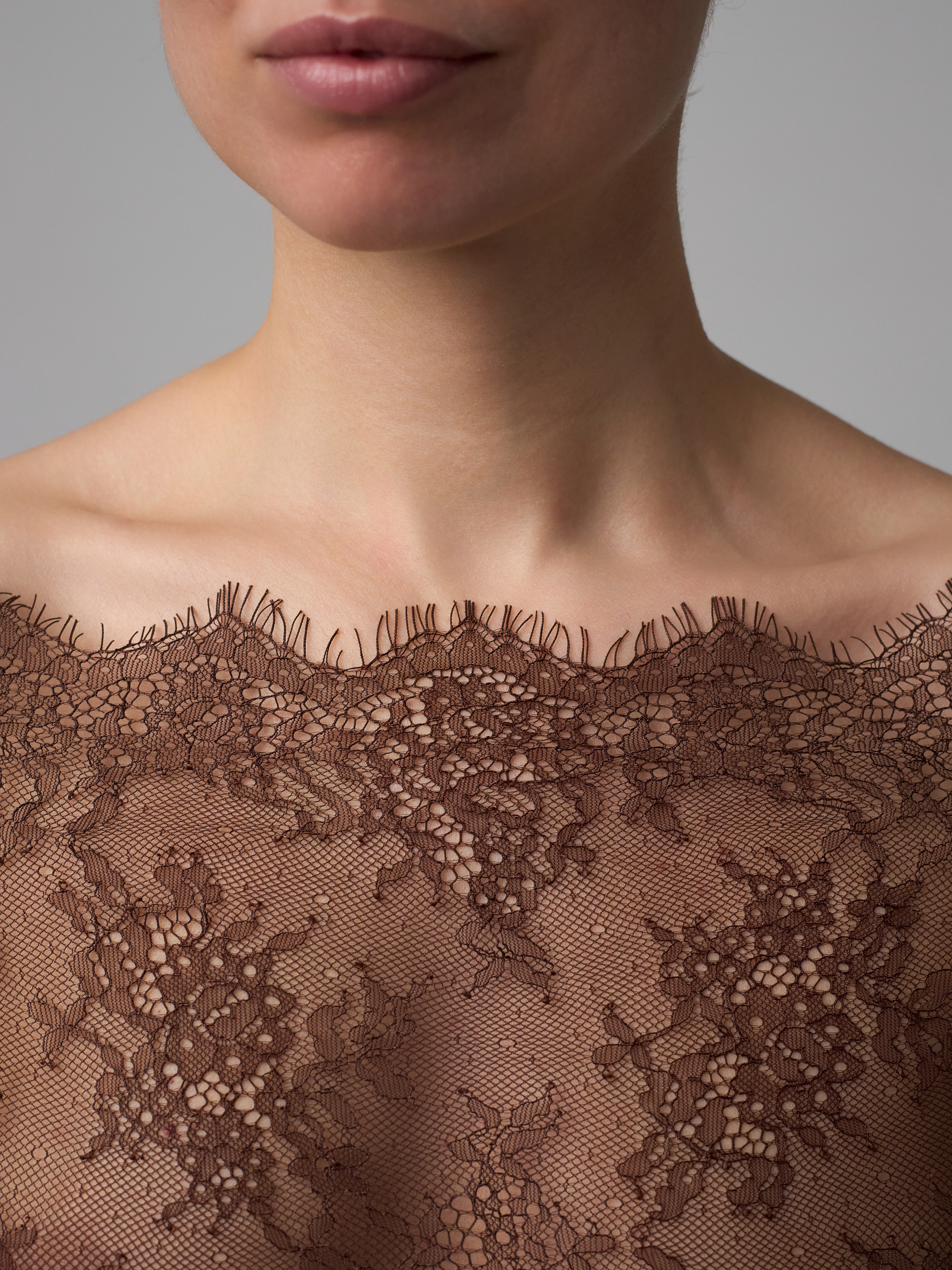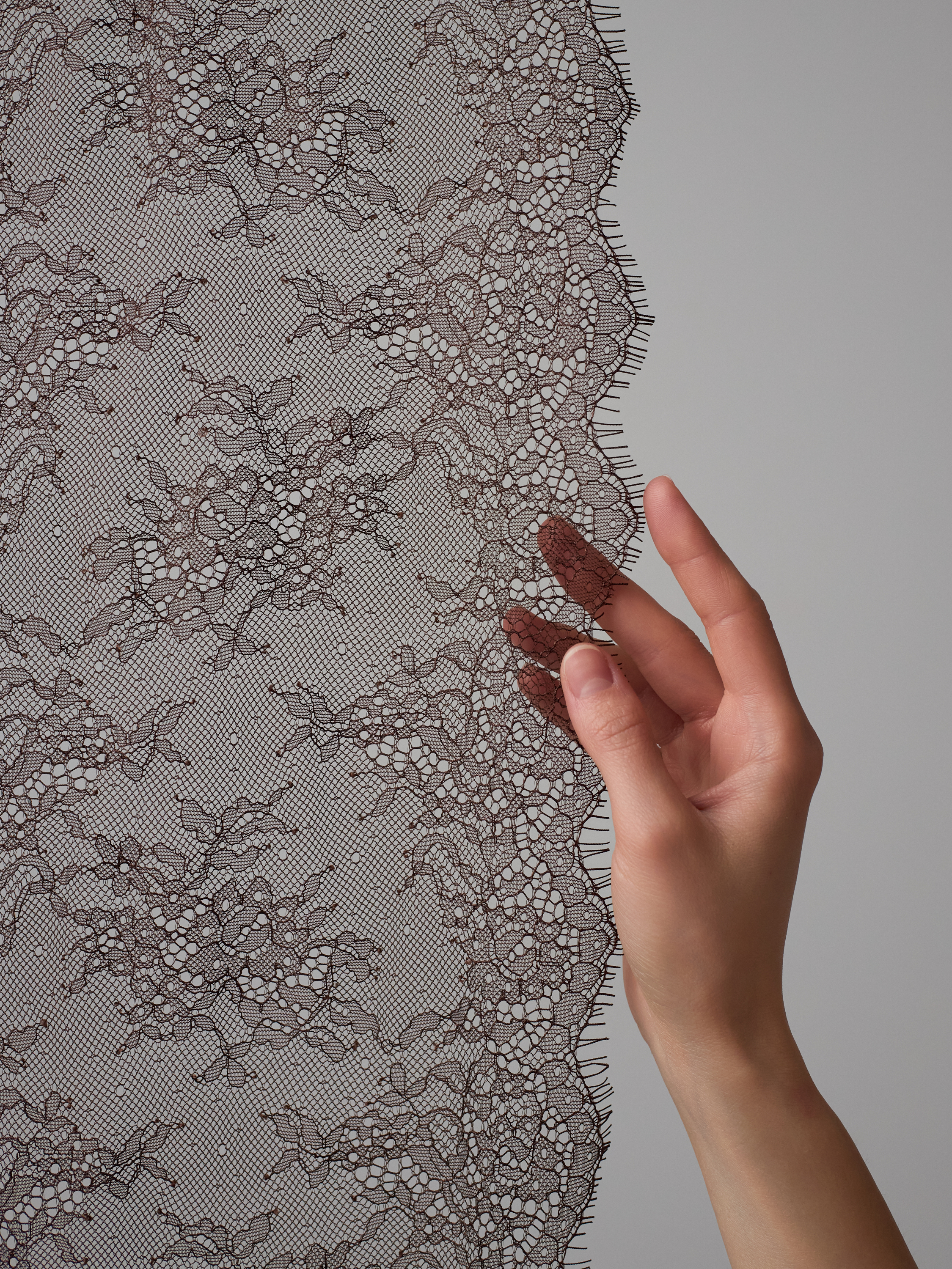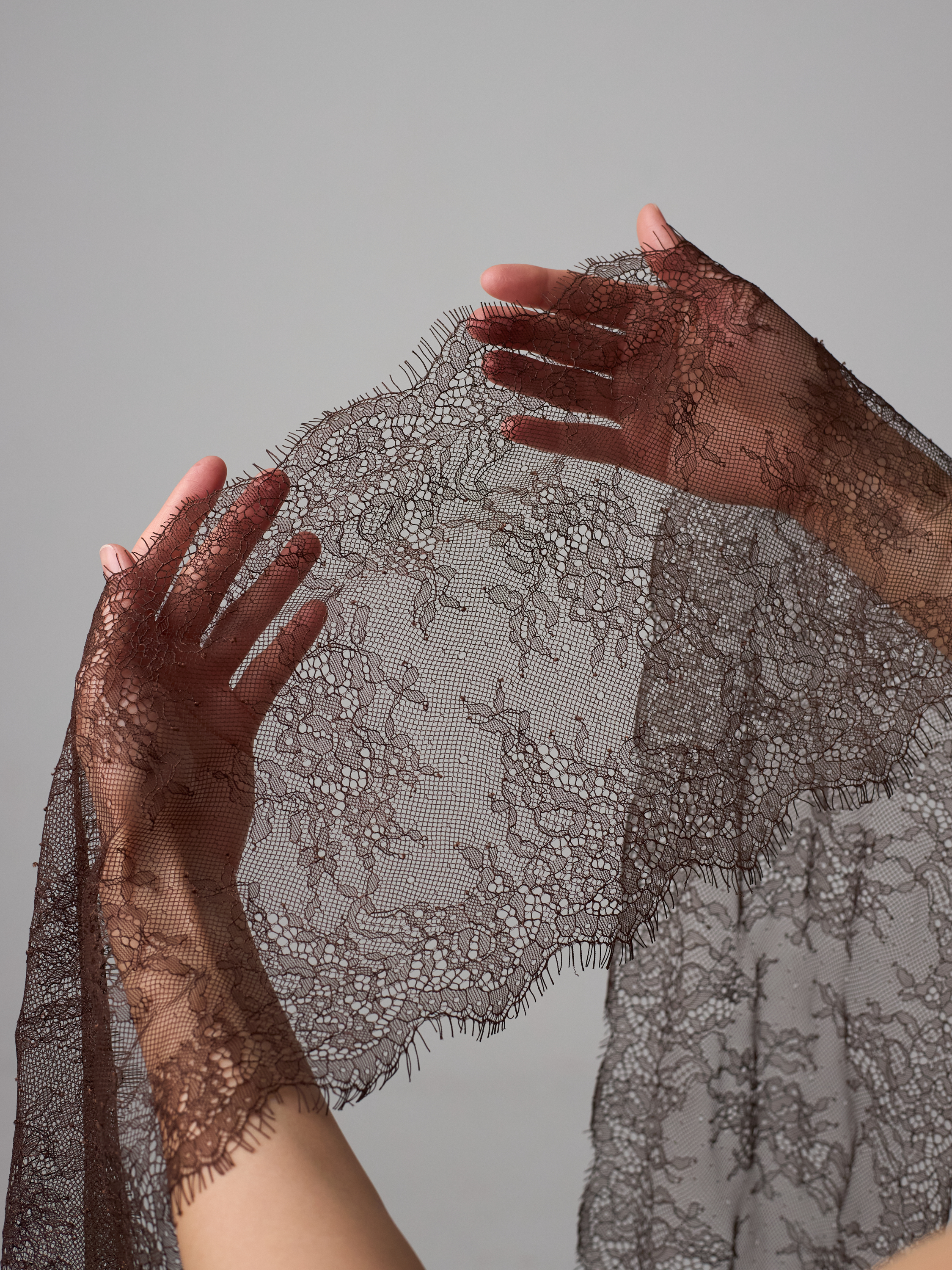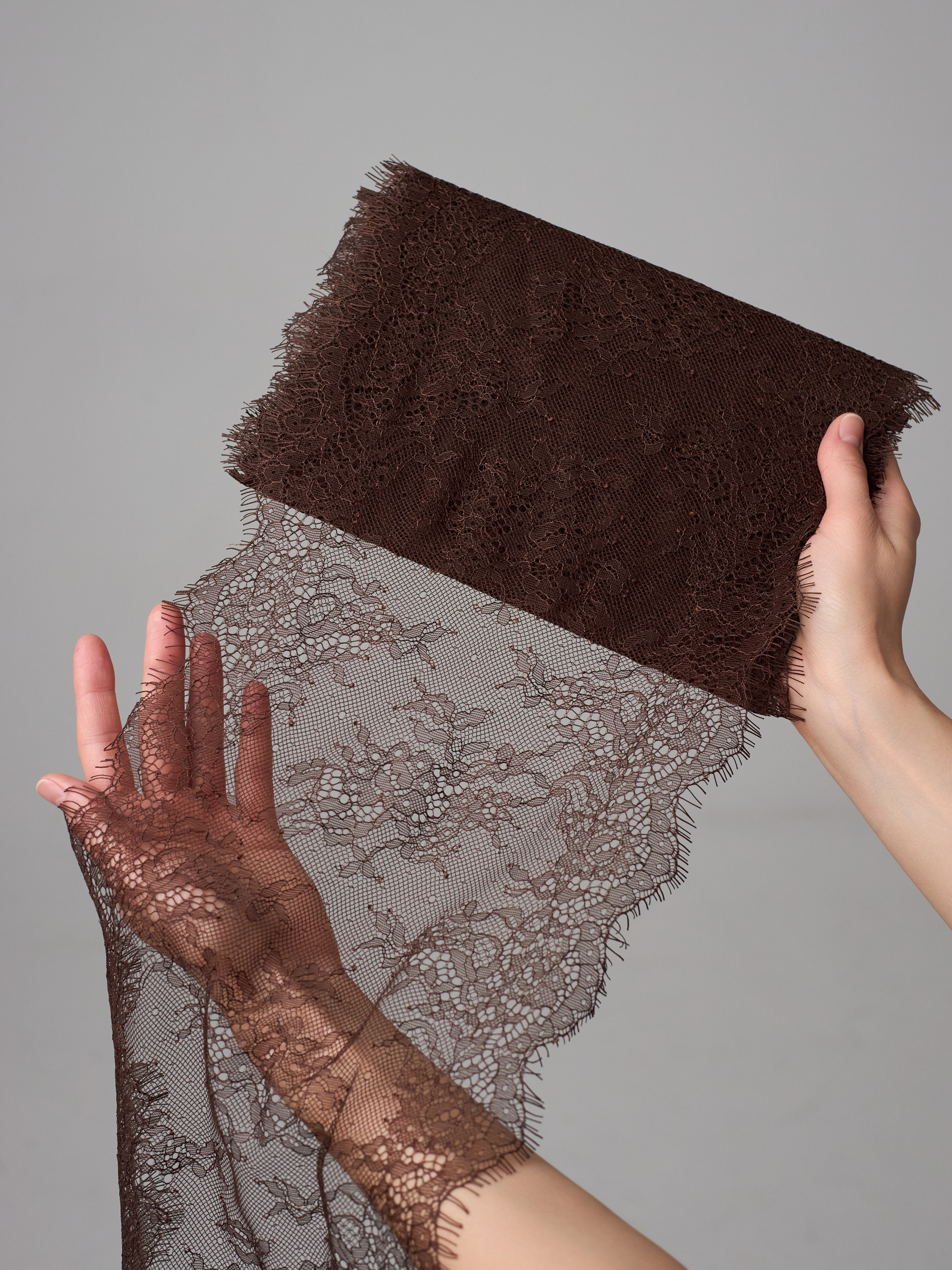 01-11 ОПТ Кружево шантильи 23 см, шоколад