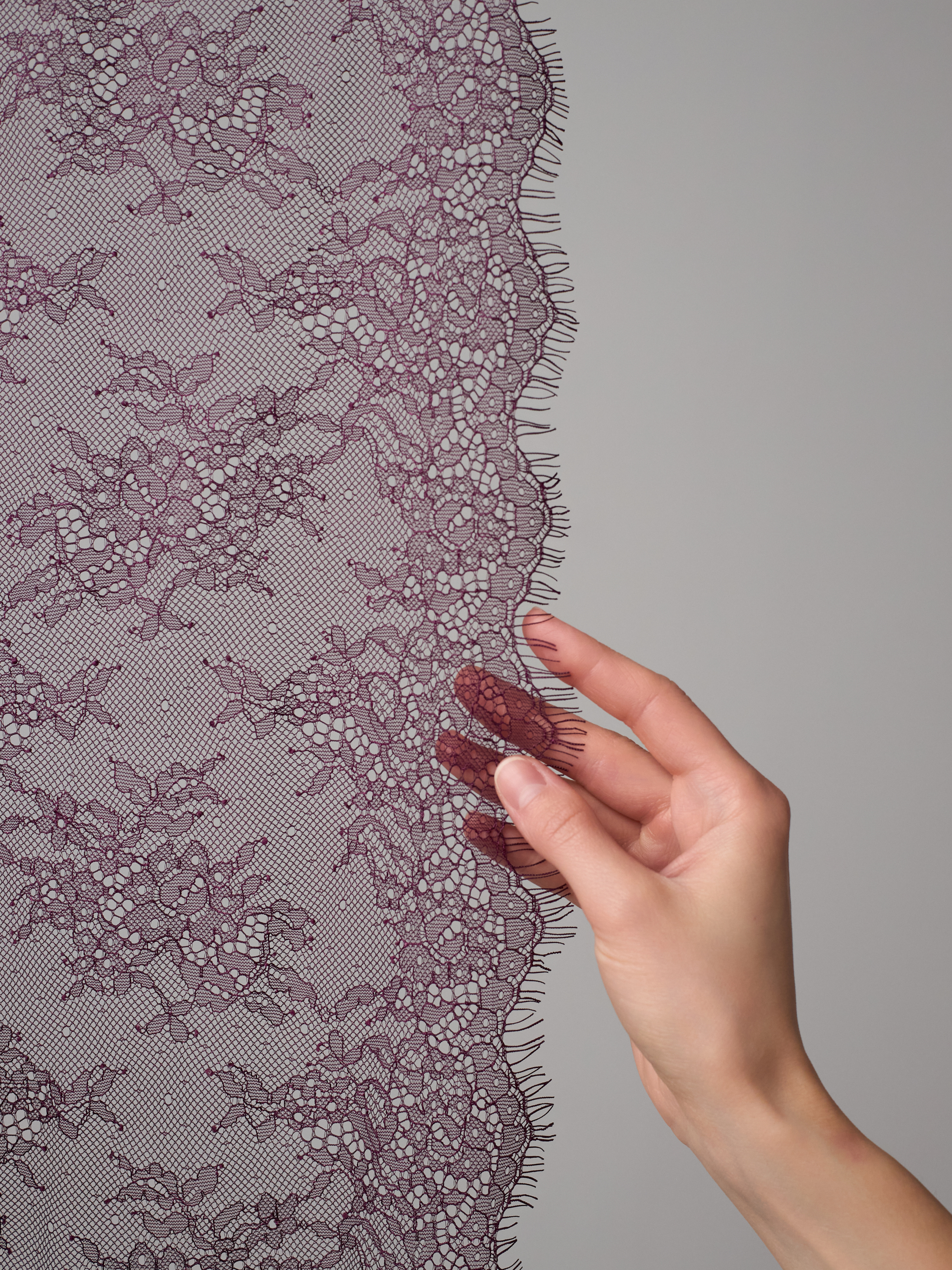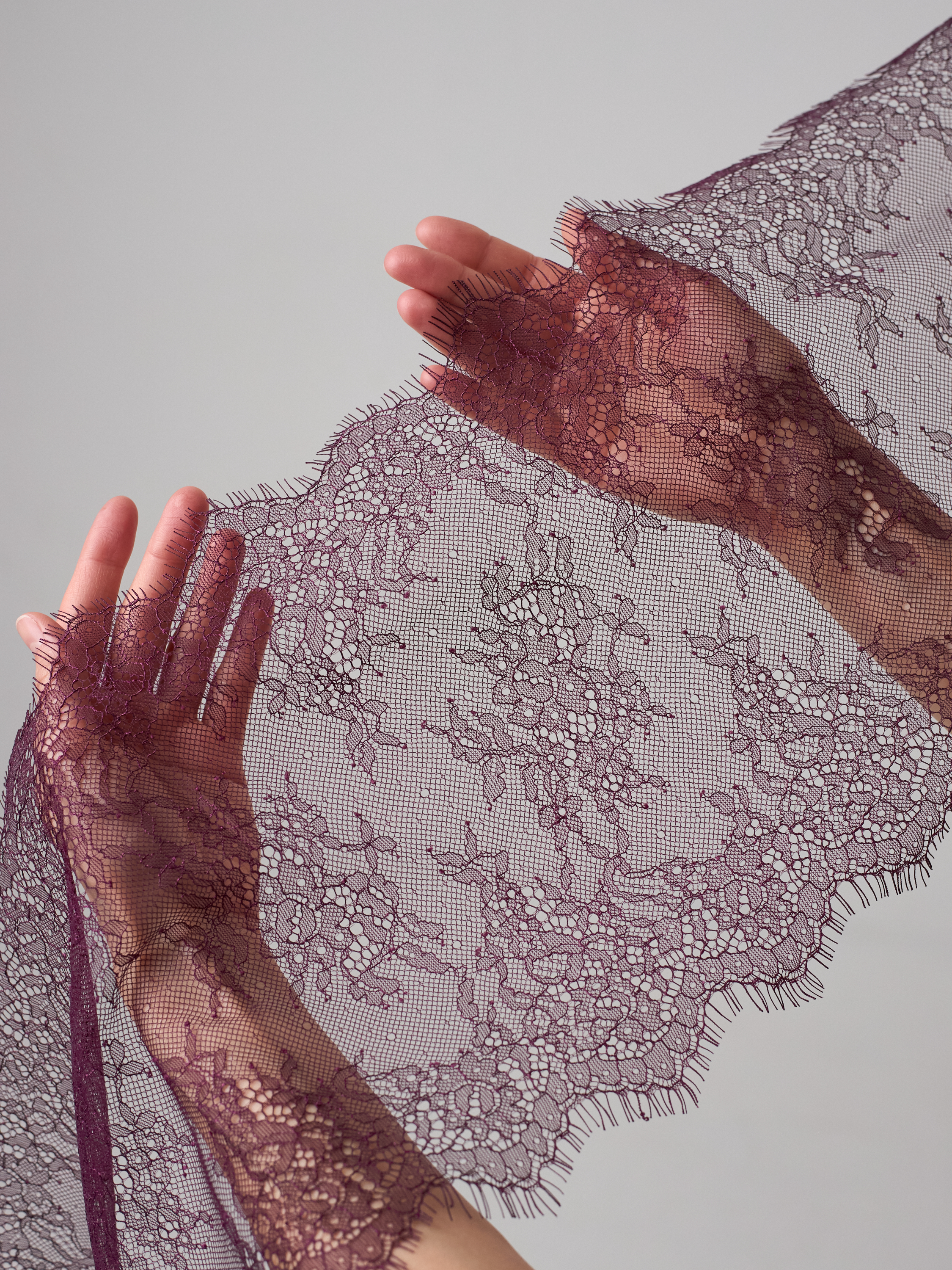 01-11 ОПТ Кружево шантильи 23 см, слива 076