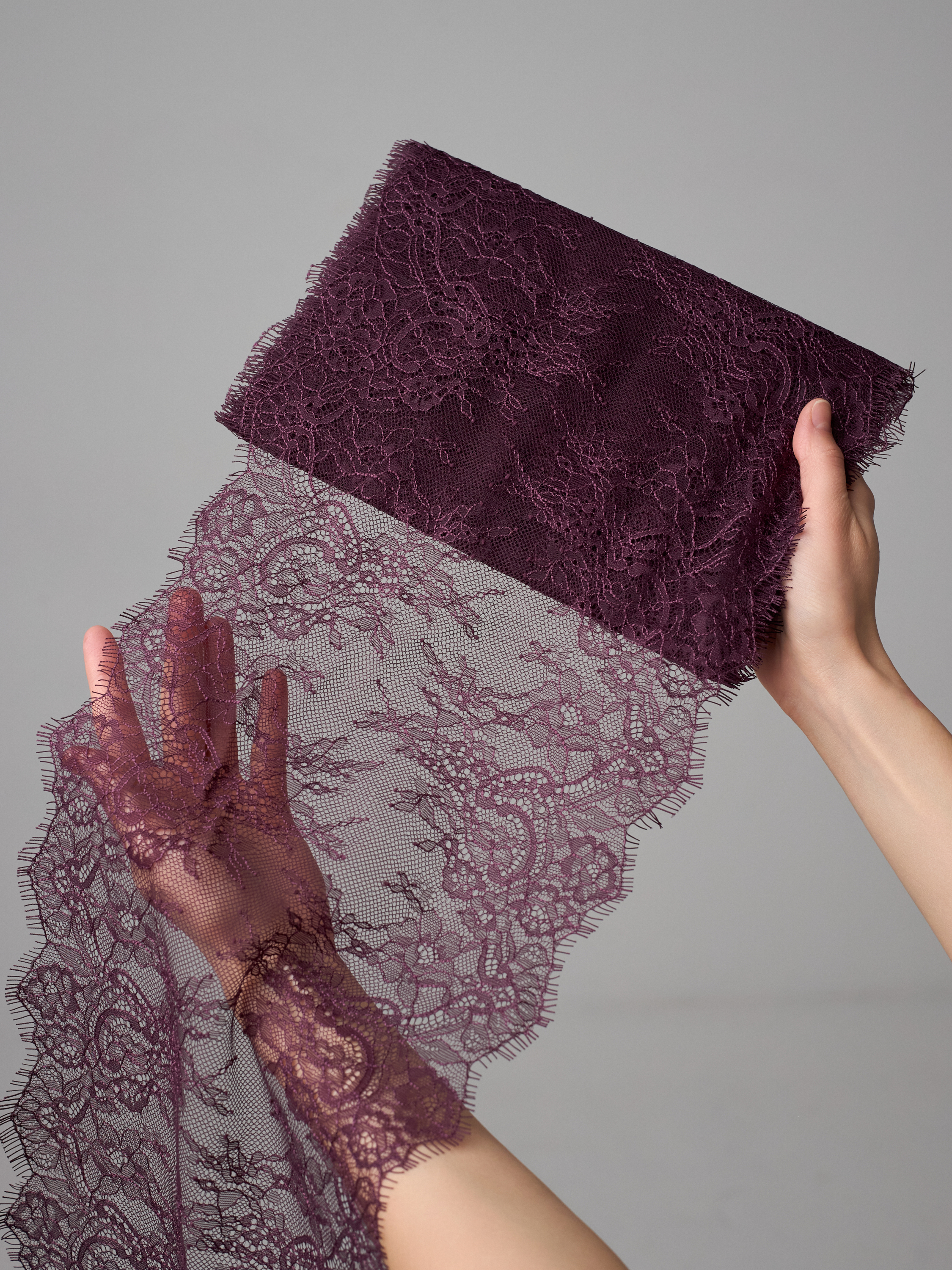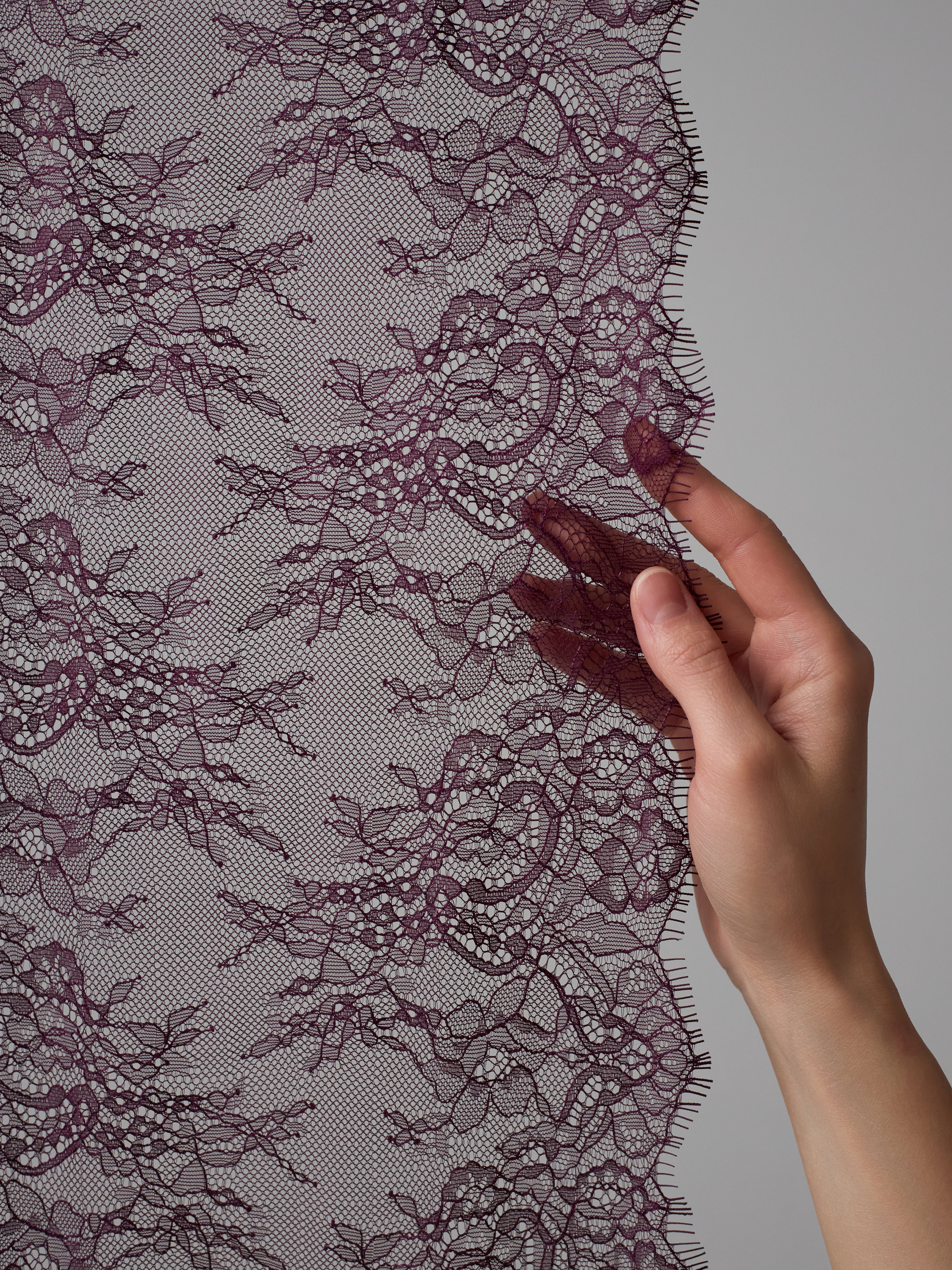 Кружево неэластичное (в его составе нет эластана, но оно немного тянется за счет плетения) с красивым узором, фестонами и чудесными ресничками. Нежное и приятное на ощупь.