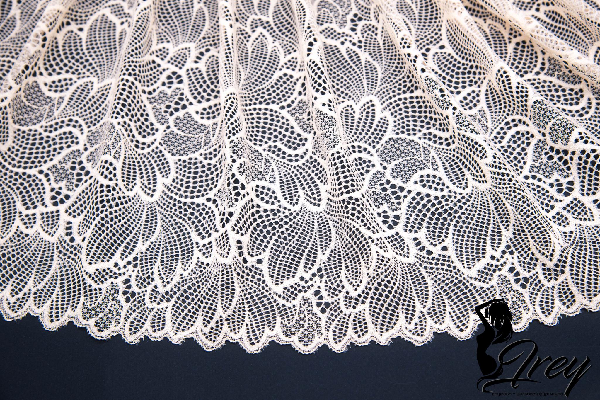 Кружево эластичное, достаточно упругое, мягкое и приятное к телу. Можно использовать как для пошива нижнего белья, так и для декорирования других предметов одежды.