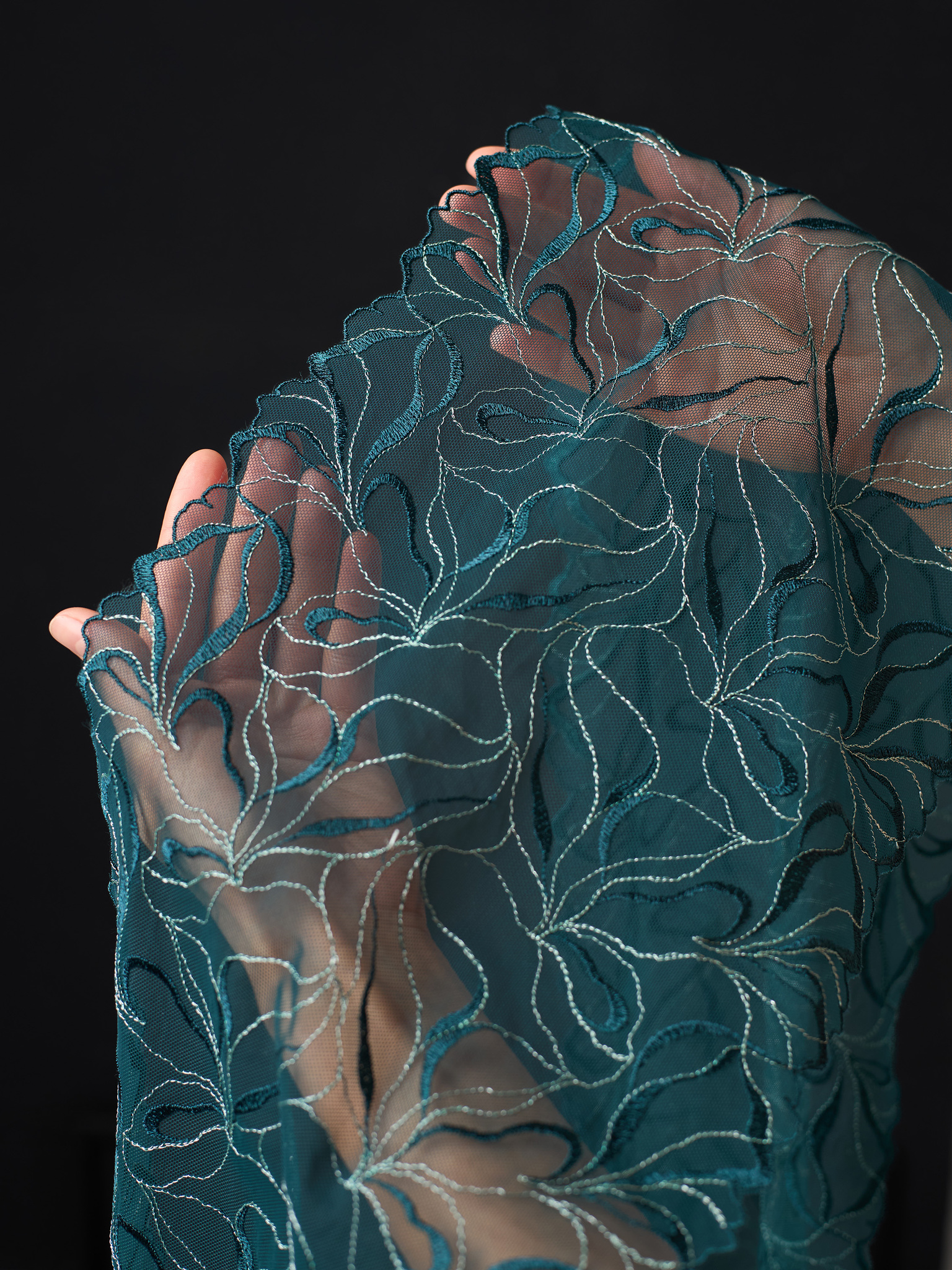 Вышивка на сетке - ткань для рукоделия. Темно-зеленая сетка с цветочным узором. Воздушная и такая красивая на теле.