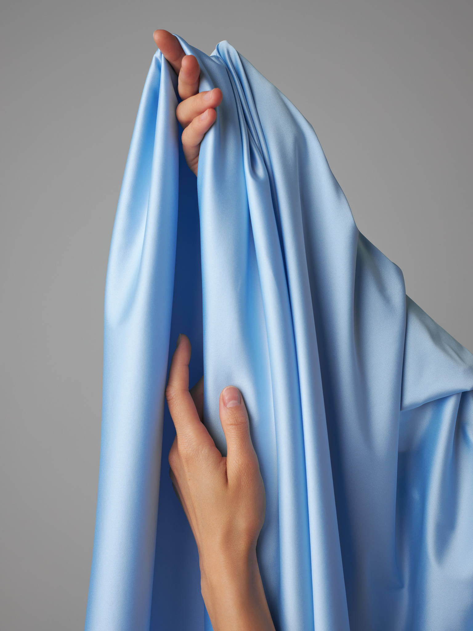 Атлас-стрейч - гладкая шелковистая эластичная ткань однотонного цвета с завораживающим матовым переливом. Его не зря называют искусственным шелком. Атлас высшего качества производят из шелковой нити, но, чтобы сделать эту ткань доступнее для многих покупателей, его варианты удешевляют за счет добавления синтетических волокон (например, полиэстера). Так и получают стрейч-атлас.