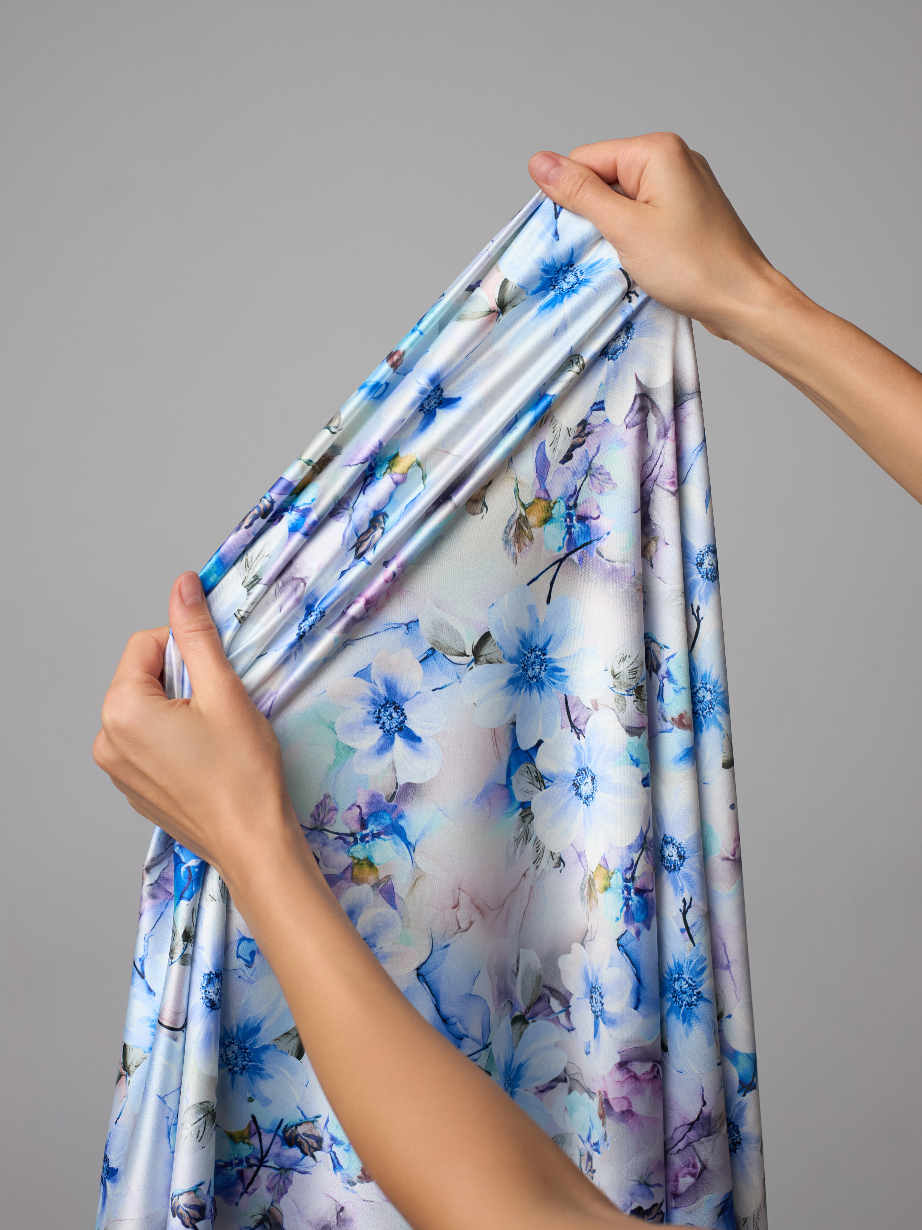 Атлас-стрейч бельевой оптом арт. 1007, Китай, принт цветы