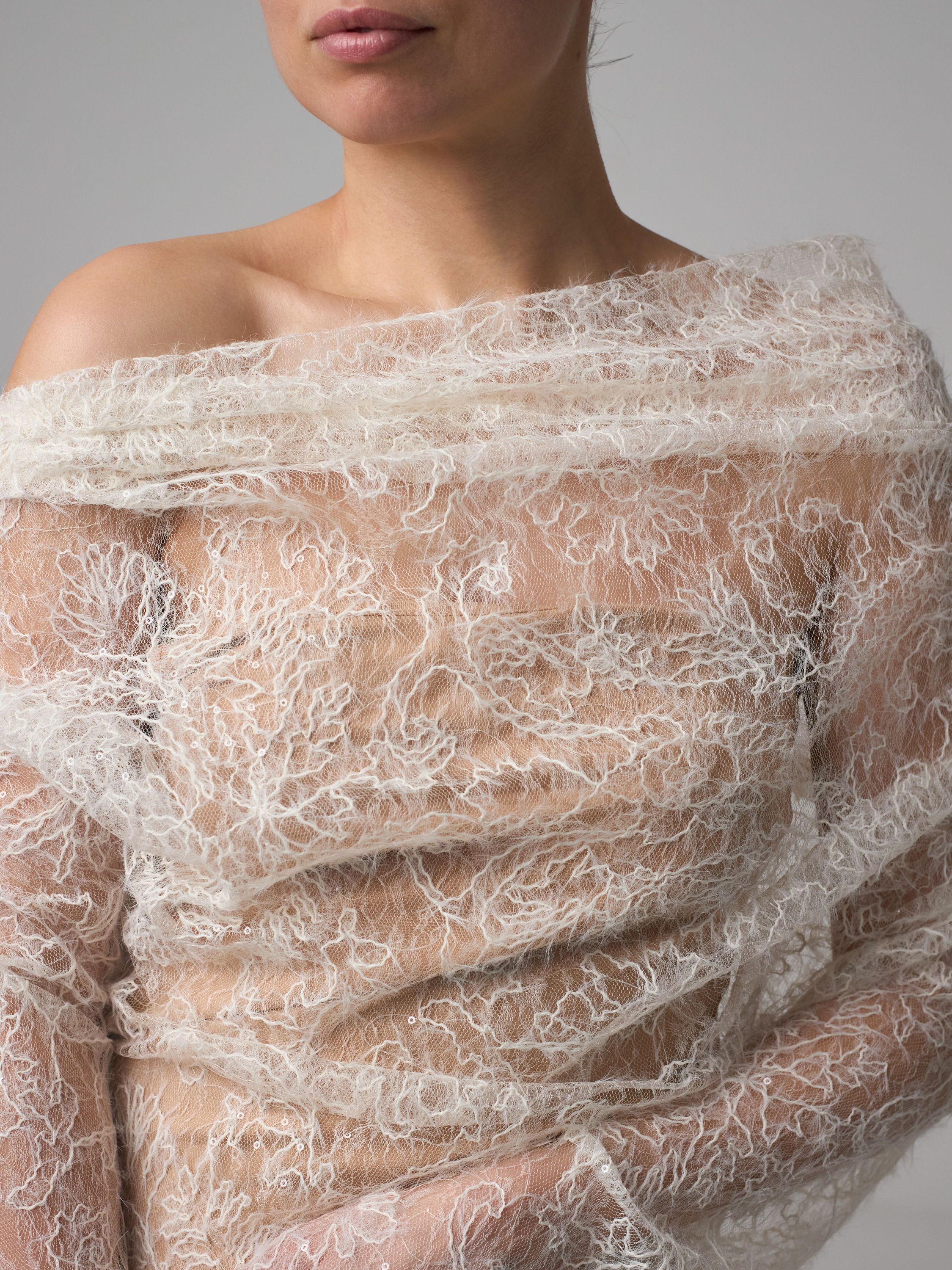 Гипюр кружевной с вышивкой "веревочка" и пайетками, арт.30, Китай, шампань