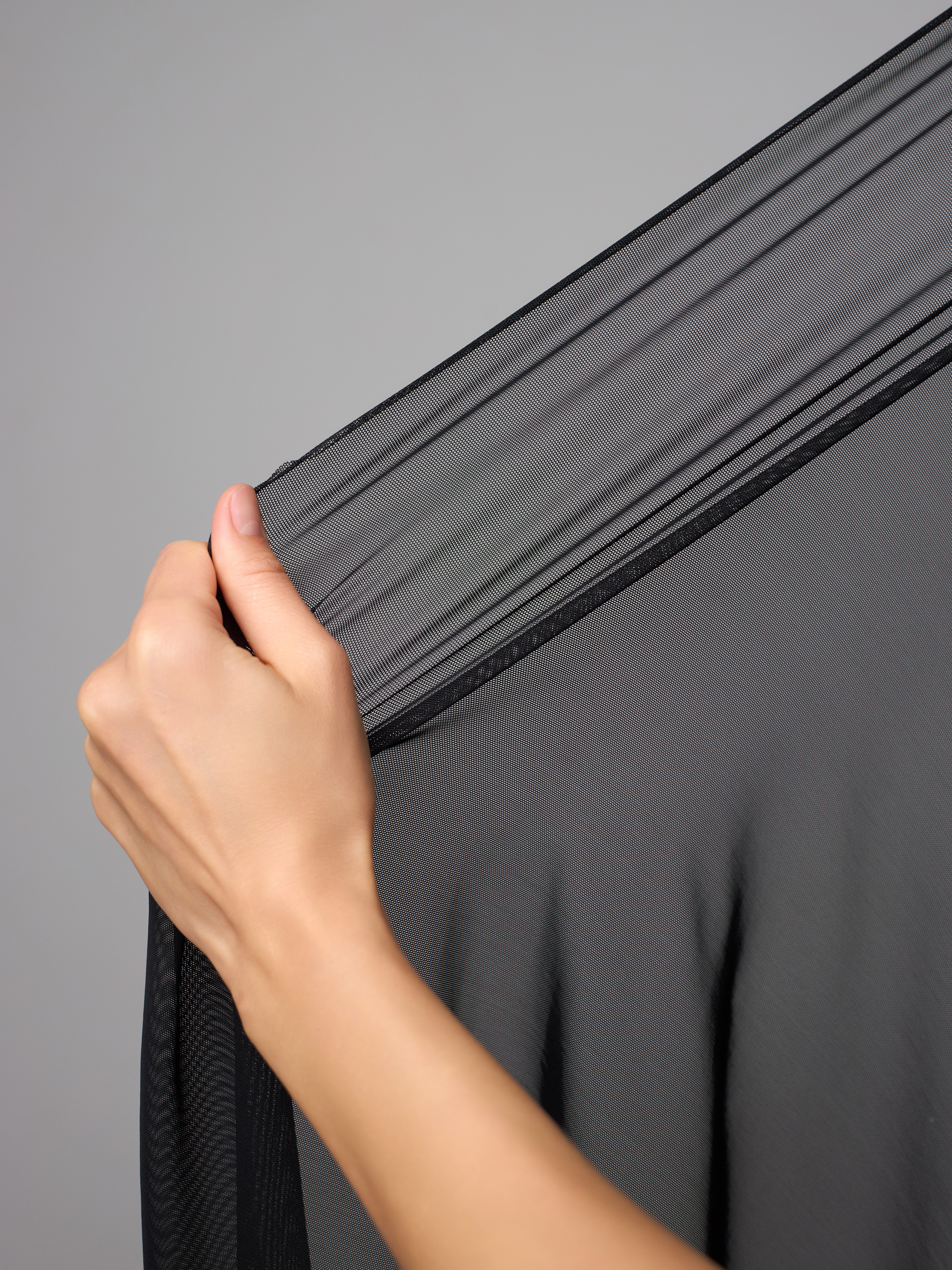 Сетка с эффектом утяжки качественная, очень упругая, одной ширины, без перекосов. Материал черный плотный, по сравнению с обычными сетками чуть более жесткий, но приятный на ощупь. Сеточка утяжка однотонная черная, с равномерным прокрасом. Главное преимущество – она выдерживает большие нагрузки, не вытягивается, сохраняет форму.