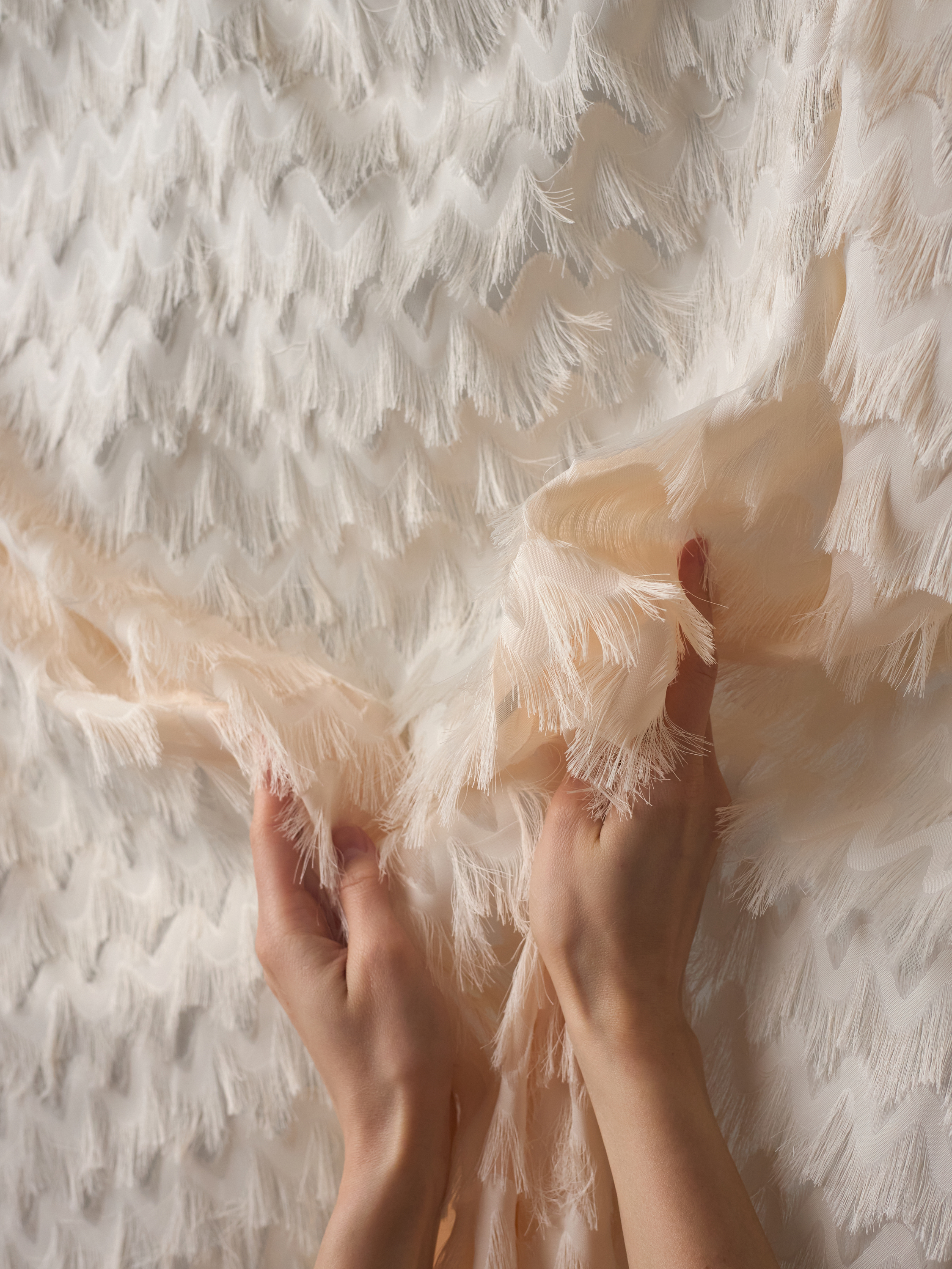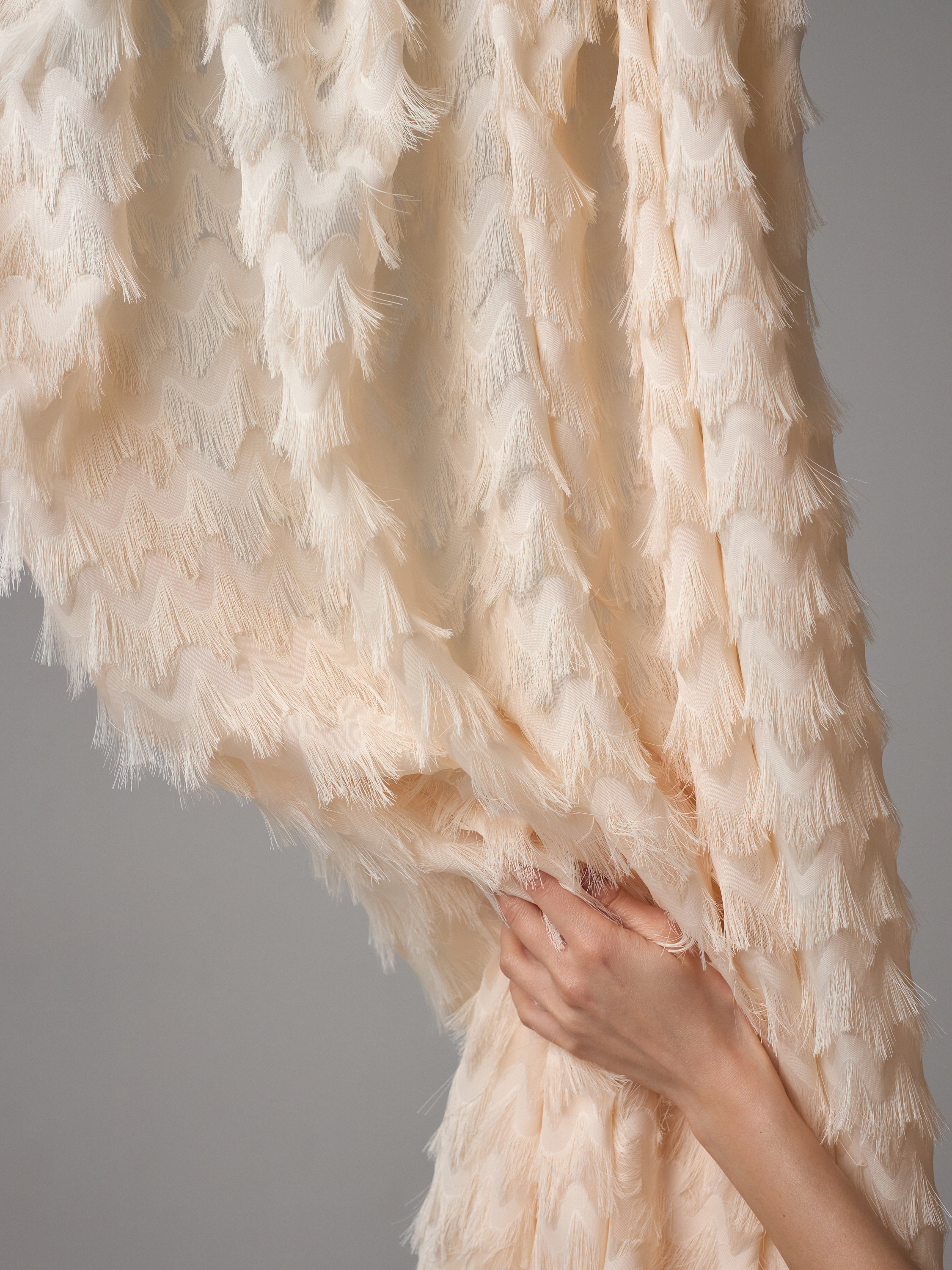 Шифон с бахромой зигзаг, арт.1201, Китай, абрикос